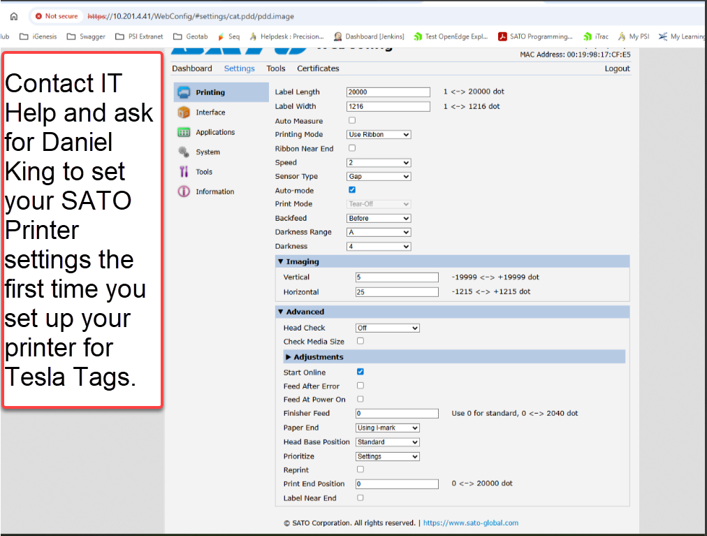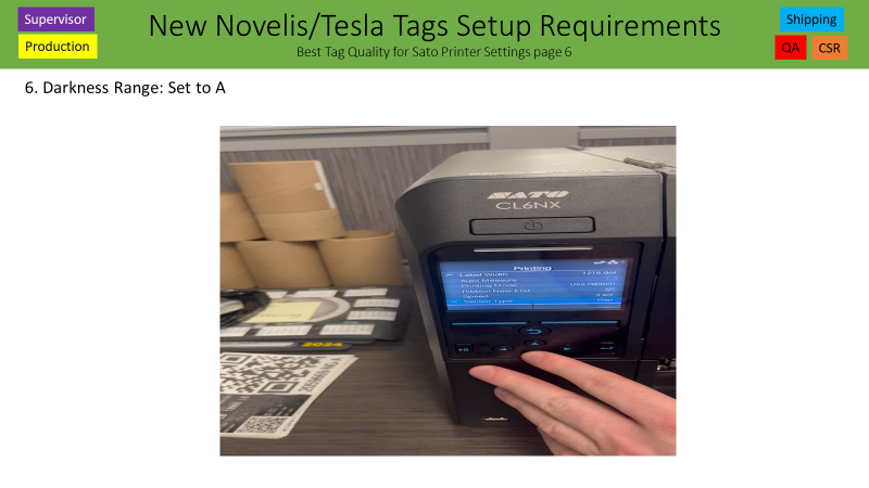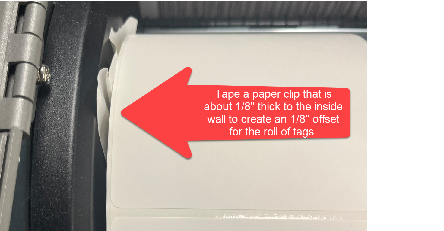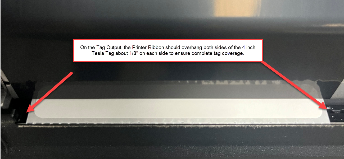 3. Make sure the Weigh Tag is centered on the printer output to ensure about an 1/8 of ribbon is overhanging the labels on each side to ensure coverage on all 4 inches of the Tesla Tag.